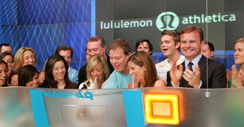 All Things Lulu Arguably the biggest Canadian fashion story this month was Lululemon Athletica’s hugely successful launch onto the American stock market. On Friday, July 27, the Vancouver-based company celebrated its initial public offering on NASDAQ, with founder Chip Wilson presiding over the market’s opening bell. Lululemon’s shares, trading under the symbol LULU, had an IPO price of USD$18.00/share. Since July 27, the stock’s all-time high was $38.85. |
