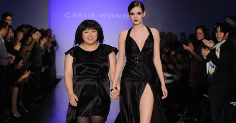 Marie Saint Pierre was the biggest shock! An unexpected wide ruffle followed the collection in a unified manner. During the show, two cross-dressers jumped onto the runway wearing tawdry ensembles, fishnet stockings, and holding signs that read, "Cédrika est morte. Vive Cédrika," and "Montreal Fashion Weak." Montreal Fashion Week staffers quickly escorted the two rebels to the nearest exit.